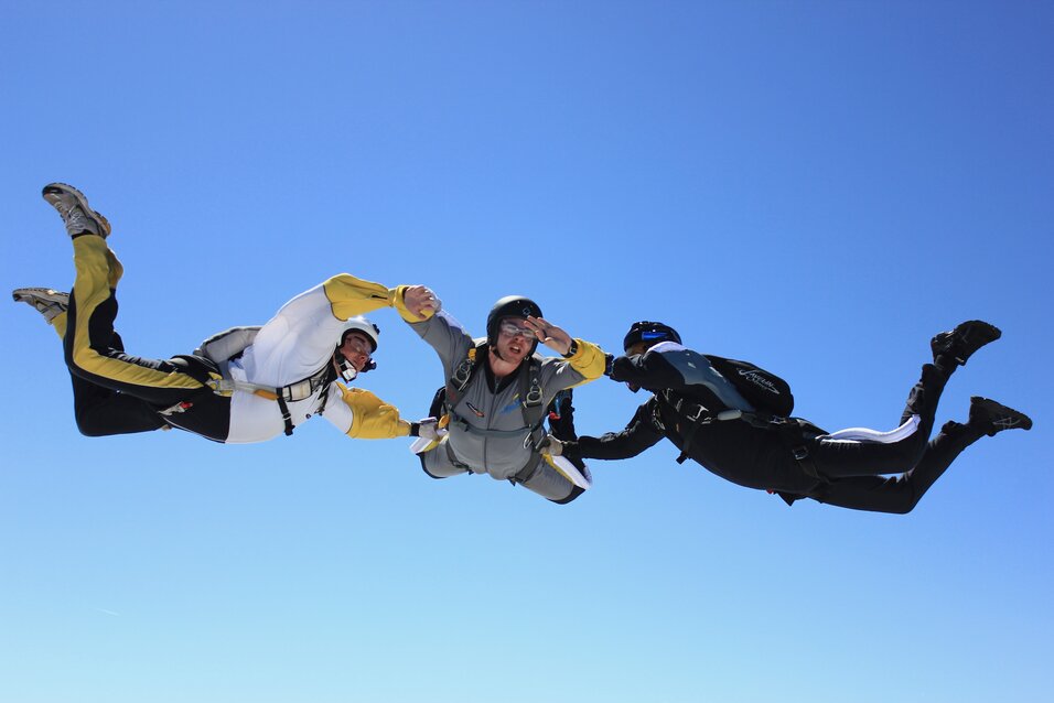 Im Gegensatz zur konventionellen Methode mit automatischer Schirmöffnung beim Sprung aus 1.200 Metern startest du hier sofort mit dem Freifall aus 4.000 Metern Höhe. Dabei wirst du von zwei AFF-Lehrern begleitet, die dir während der ersten Sprünge nicht von der Seite weichen werden.